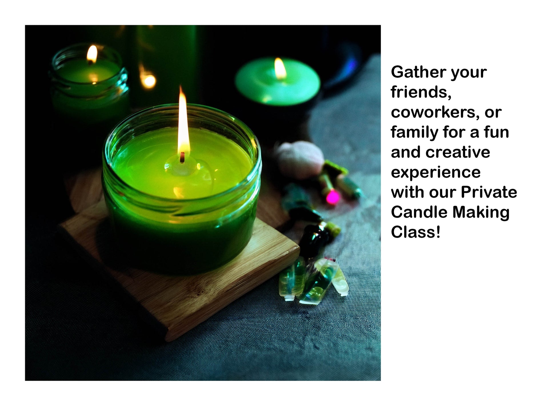 Gather your friends, coworkers, or family for a fun and creative experience with our Private Candle Making Class! Perfect for team-building events, celebrations, or simply a unique night out, this hands-on workshop will guide your group through the process of crafting your own custom soy candles.